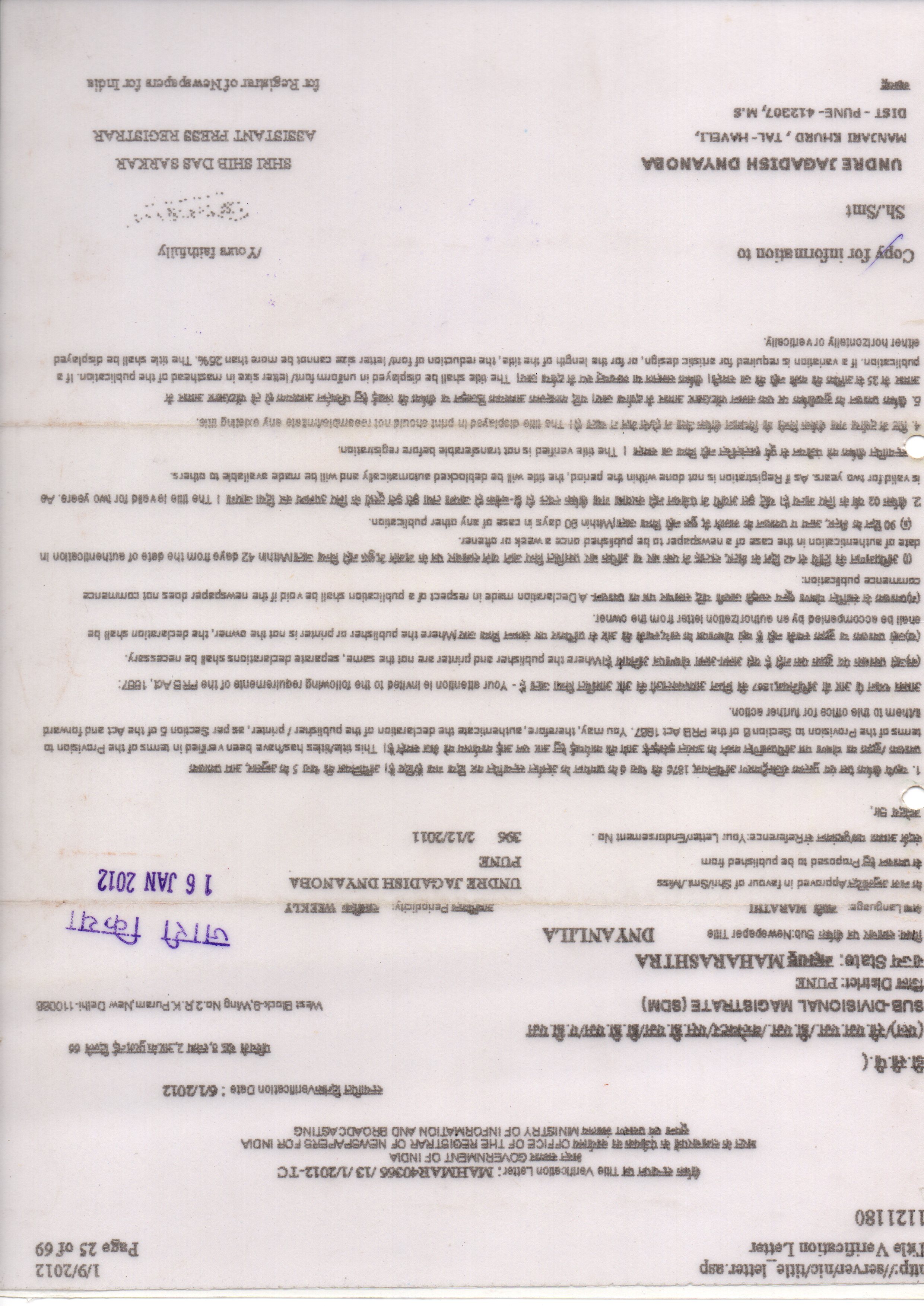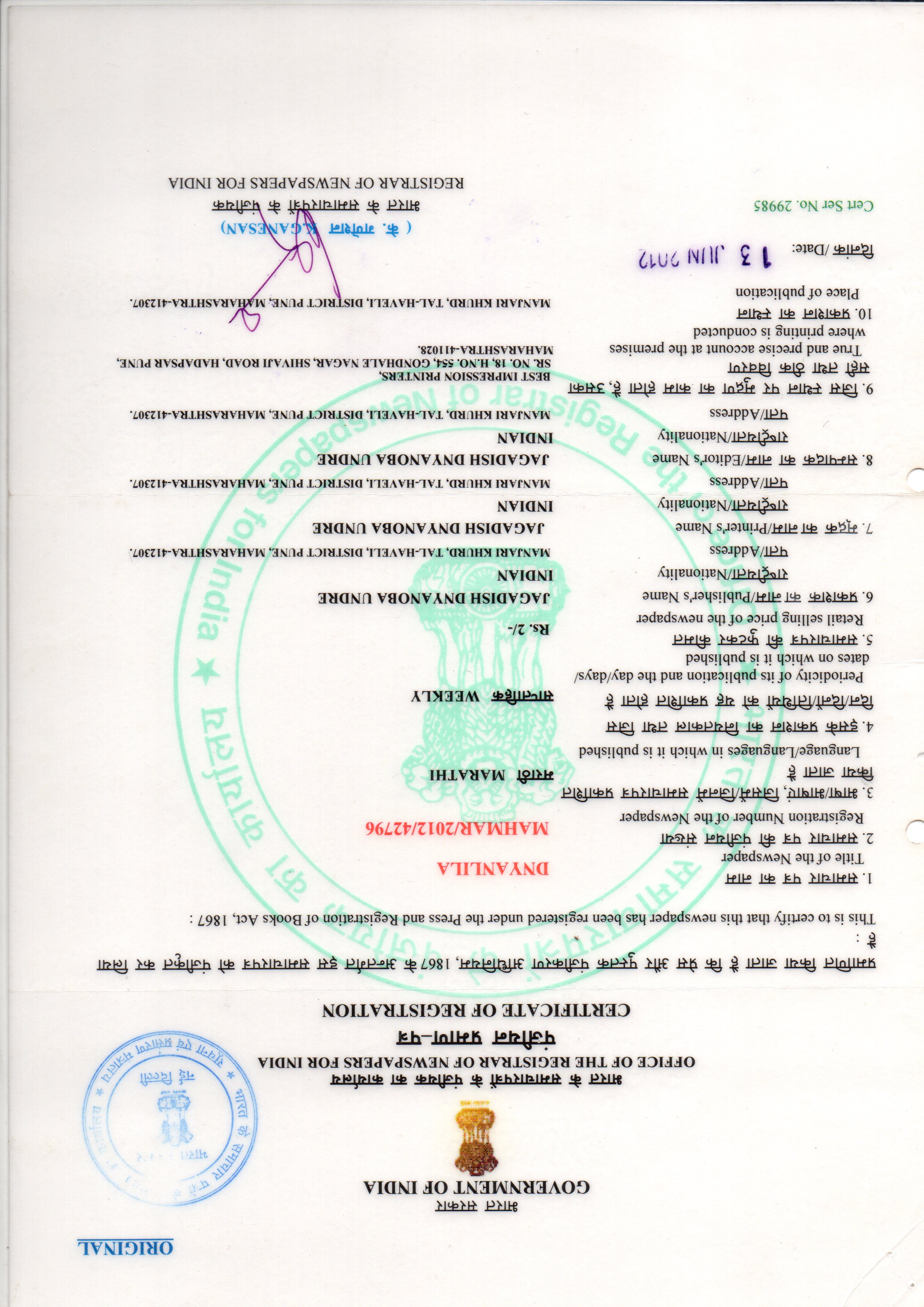 मुख्य संपादक : श्री. जगदीश ज्ञानोबा उंद्रे